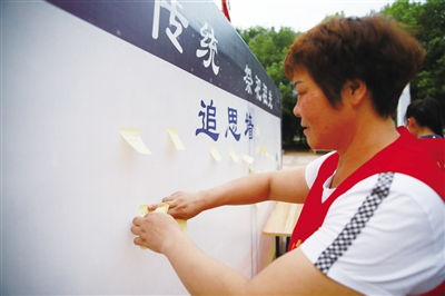 夜色渐暗,法治主题广场的人多起来,祥云社区“衡阳群众”志愿者们忙着给行人发放文明祭祀倡议书。大家拿上鲜花,在小卡片上写下对故人的思念,整个过程简单环保又不失庄重。