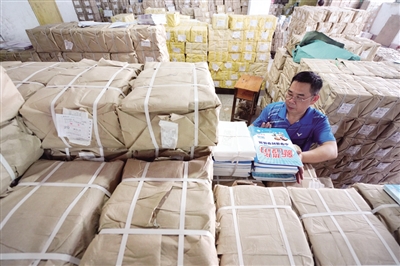 8月26日,市新华书店工作人员在图书仓库整理、配发新学期教材。据了解,新学期开学在即,我市各新华书店正在抓紧做好教材和教辅书籍的分类和发放工作,确保全市中小学校师生能及时领到新书。 ■王翟 摄