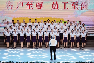 8月22日晚,“我和我的祖国·湖南百万职工同声唱”衡阳市合唱决赛谢幕。比赛中,衡阳农商银行合唱队以一首民族经典歌曲《鸿雁》深深打动了现场的观众和评委,以97.68分的总成绩荣获三等奖。■何翔斌 摄