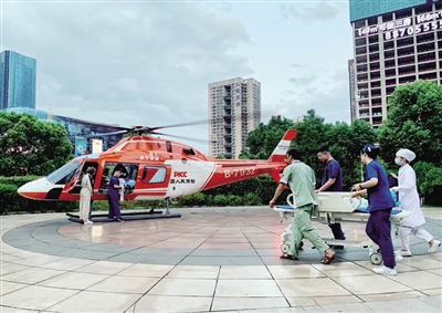 8月26日,救援直升机飞驰衡阳、长沙两地,成功将我市一位女患者运抵中南大学湘雅医院,仅用时53分钟。 ■阿 季 摄