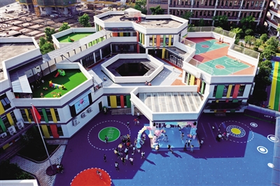 蜂巢般的教室、彩虹样的跑道、星空似的操场……置身其中犹如进入童话世界。8月31日,备受关注的高新区衡州幼儿园正式开门迎新。据了解,位于高新区天台路与明月南街交界处的衡州幼儿园,占地12.54亩,建筑面积6500多平方米,可开设16个教学班,容纳幼儿480人。本次开园共开设13个教学班,其中小班7个,中班4个,大班2个。■记者 彭 斌 摄