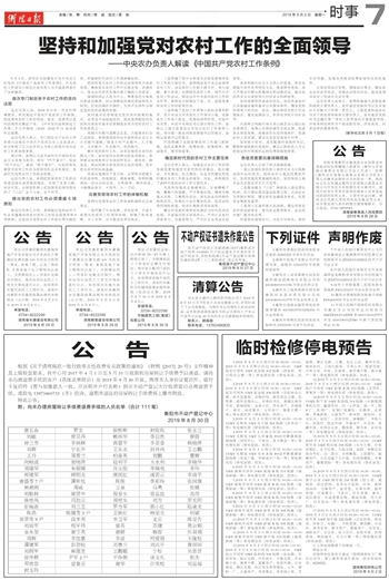 衡阳日报 版面七 A07 2019-09-021 2019年09月02日 星期一