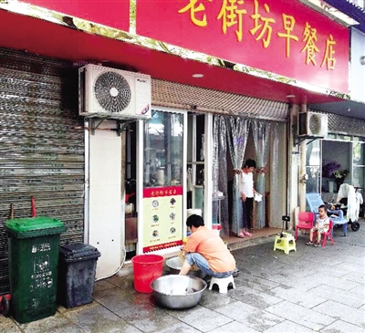 市民“44AF68 ”先后两次举报老街坊早餐店占道经营、垃圾桶外摆、店门口污水横流。