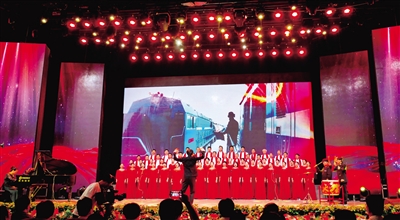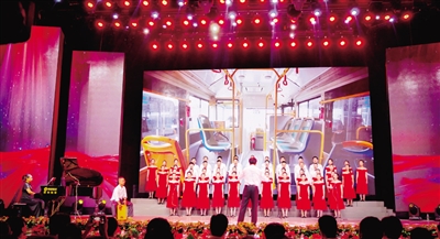 “祖国,公交儿女向您报告:我们在平凡的岗位上做到了政府放心、百姓满意、公交幸福。祖国,公交儿女向您保证:每一辆公交车都向着最美地级市奔跑,每一个车厢都是文明的衡阳。”当天,衡阳公交集团公司合唱队倾情演绎的《我爱你祖国》表现新颖,全场观众不由自主地挥舞小红旗,和着节拍一起唱。