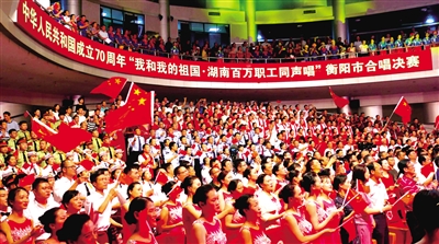据了解,“我和我的祖国·湖南百万职工同声唱”歌咏活动是湖南省委、省政府庆祝新中国成立70周年的系列活动之一,由省总工会承办。按照市委和省总工会部署,5月初,市总工会党组会研究通过,制定“我和我的祖国·湖南百万职工同声唱”衡阳市歌咏比赛方案,专班专人落实,加强资金保障,第一时间与市网信办联合发文,组织参与全省网络新媒体歌唱大赛并积极推进全市各级合唱大赛。