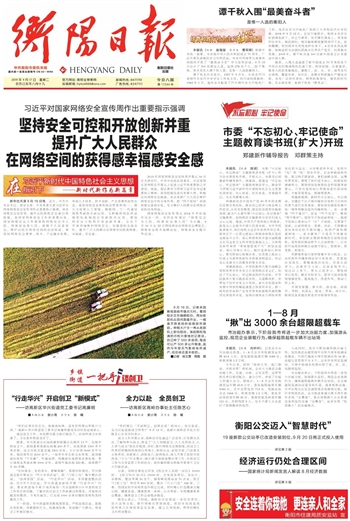衡阳日报 版面一 A01 2019-09-171 2019年09月17日 星期二