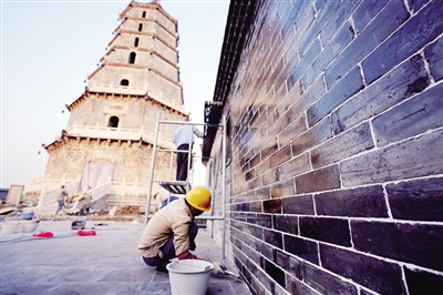 据统计,此次大修共修缮了来雁塔大大小小的残损100余处,每一步都十分考究,大量采用古老工艺,四处搜罗原始材料,尽可能让来雁塔完整重现往日雄姿。