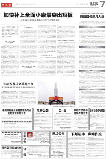 2019年12月23日 星期一 出版 返回首页 | 版面概览 | 版面导航 | 标题导航