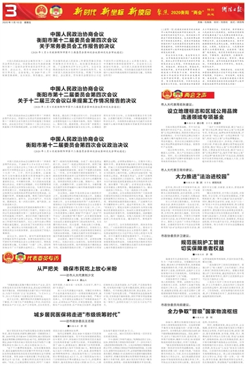 衡阳日报 版面三 A03 2020-01-101 2020年01月10日 星期五