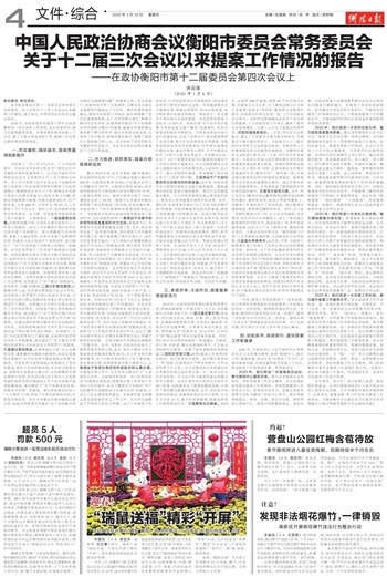 中国人民政治协商会议衡阳市委员会常务委员会 关于十二届三次会议以来提案工作情况的报告