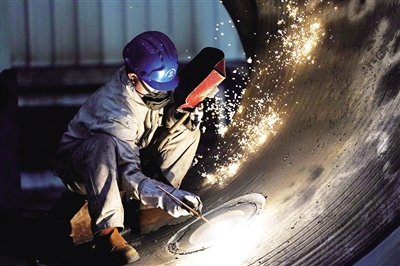 2月10日,在哈电集团哈尔滨锅炉厂有限责任公司的生产车间,工人在进行生产作业。近日,在做好防控新冠肺炎疫情工作的同时,全国许多企业开始复工复产。