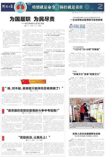 衡阳日报 版面二 A02 2020-02-111 2020年02月11日 星期二