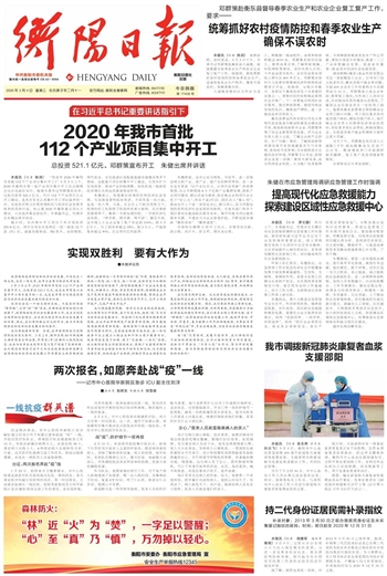 衡阳日报 版面一 A01 2020-03-041 2020年03月04日 星期三