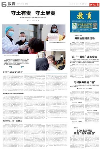 日前,驻村工作队员带着学院党委的嘱托和600多个医用口罩、230斤的84消毒液及双氧水等防控物资,奔赴扶贫一线与村民并肩战“疫” 。
