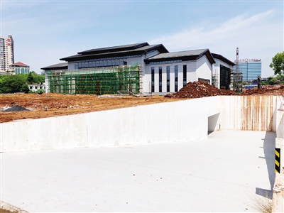 4月13日,衡阳市图书馆项目建设现场,工人们正在进行室内装修、室外绿化及附属工程的施工。含540个泊位的地下停车场已全部完工,等待验收。据了解,该项目主体结构、屋面结构及防水、外立面装饰、24小时图书馆(样板间)等工程已完工,全部预留预埋及工艺管道敷设已完成75%,附属工程结构施工及土方回填已完成70%。预计10月完成建设并交付使用。 ■记者 罗盟 摄