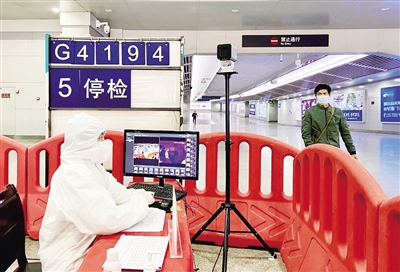 昨日上午,记者在衡阳火车站进出站口看到,轮流执勤的医务工作人员紧盯着测温通道的远红外自动测温显示屏,密切关注着每一位旅客的体温情况。车站工作人员介绍,如果发现体温异常的旅客,他们将对旅客再次测温,核实身份,并查询旅客的个人健康码,及时联系相关部门,采取措施。