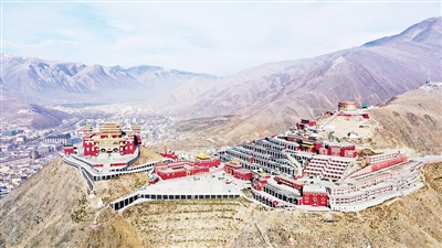 站在海拔近4000米的当代山山顶,鸟瞰玉树新城,扎曲河、巴塘河穿城而过,一座座色彩明快的藏式住宅沿着山势向谷地蔓延开来,四纵十六横的马路上车辆川流不息。