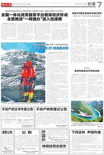 2020年05月27日 星期三 出版 返回首页 | 版面概览 | 版面导航 | 标题导航