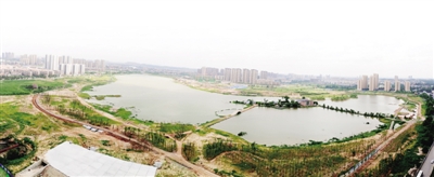 湖区呈半月型镶嵌在公园中央,湖面开阔,拱桥倒影,景色别致,令人心旷神怡……酃湖公园建成后,不仅是市民休闲好去处,也将成为衡阳城市新地标。