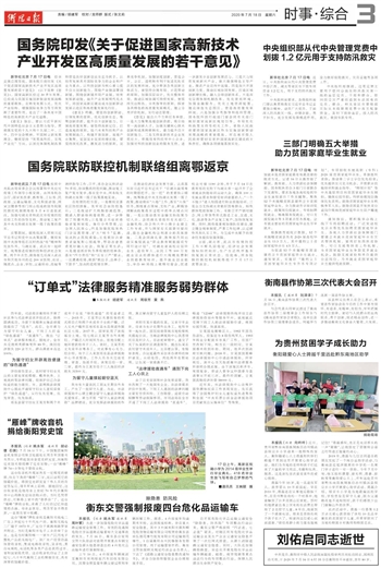 衡阳日报 版面三 A03 2020-07-181 2020年07月18日 星期六