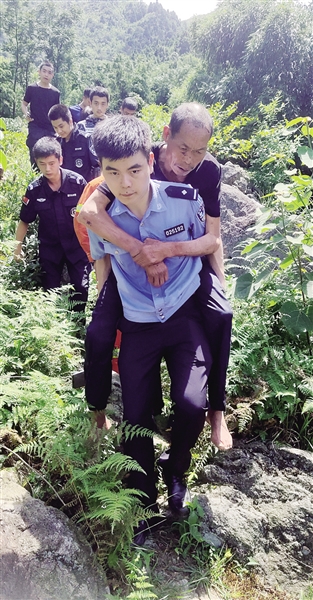 13时,老人的儿子在南竹山一处基本上没有路的地方发现了老人。只见老人全身赤裸、僵硬地躺在地上,身体发凉,反应迟钝。村民自发带着柴刀开路,搜救人员轮流背着老人下山。