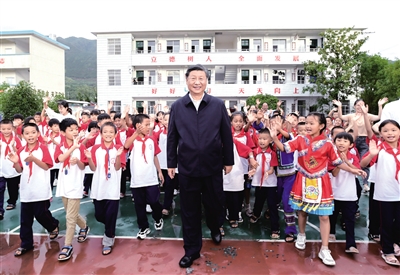 9月16日至18日,中共中央总书记、国家主席、中央军委主席习近平在湖南考察。这是16日下午,在郴州市汝城县文明瑶族乡第一片小学,师生们簇拥着习近平步出校园。 ■新华社发