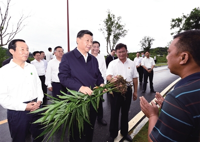 9月16日至18日,中共中央总书记、国家主席、中央军委主席习近平在湖南考察。这是16日下午,习近平在郴州市汝城县文明瑶族乡沙洲瑶族村沙洲现代农旅示范基地,了解扶贫产业发展和增收情况。 ■新华社发