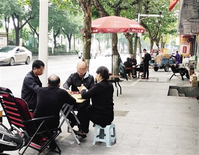 本报讯 (文/图 记者 胡亚华)“聚众在人行道上打牌,真是不像话!”近日,湘江北路居民向本报新闻热线反映,一些人将牌摊架设在人行道上,妨碍路人正常通行。