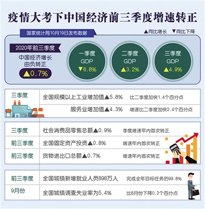 从19日国家统计局公布的数据看,GDP的“转正”并不孤单,前三季度中国经济的多项主要经济指标表现,可以说是“全面翻红”,多个方面实现了全面“转正”: