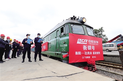 位于东阳渡街道的现代物流产业园内,一列运载华菱衡钢钢管的“中欧专列”从湖南红光物流有限公司出发,标志着该区乃至全市深度融入“一带一路”有了新通道;