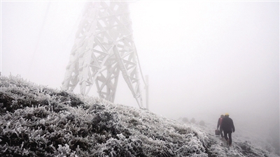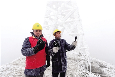 本报讯 (文/图 通讯员 汪继生 谢哲轩) 12月12日,气温开始下降,国网衡阳输电检修公司迅速安排员工进驻天堂山冰情观测哨,全天候监测冰情。