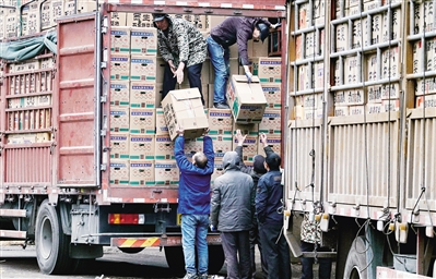 1月6日,在西园菜市场内,经营户正忙着卸货清点。为应对即将到来的新一轮冷空气,市场加大了对外地蔬菜的调运力度,确保市民的“菜篮子”供给,力保量足价平。■张志伟 摄