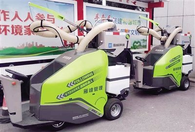 本报讯(文/图 记者 胡亚华 通讯员 张衡萍)昨日,两台新款清吸机器人“站”在雁峰区政府机关大院内,长长的大鼻子尤其抢人眼球,环卫工人亲切地称它为“聪明的象鼻子”。新款清吸机器人专门用于清吸零散分布在街道边角、绿化树桩处、草丛中的树叶、石子等杂物。