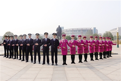 该校高铁礼仪队的同学们驻足于铜像前,感受詹天佑以身报国的爱国主义精神、精益求精的工匠精神、自强不息的拼搏精神和敢为人先的创新精神,肩负新中国铁路建设者的使命,坚守“一带一路”新时代的铁路发展的信念。