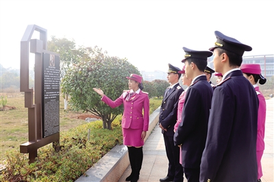 本报讯 (文/ 通讯员 张懿静 邓娴 图/通讯员 张涛)1月4日,阳光明媚。湖南高速铁路职业技术学院的一群身着高铁制服的同学聚集在詹天佑广场新落成的两块铜像文化牌前,听讲解员讲述詹天佑生平故事和詹天佑铜像落成的故事。