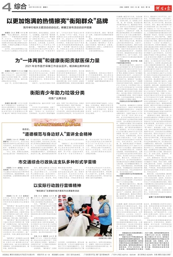 本报讯(记者 金明达 通讯员 刘先军)昨日是3·5“雷锋纪念日”,市交通综合行政执法支队开展多种形式学雷锋活动,重温雷锋精神,立足岗位做奉献,让雷锋精神在雁城不断绽放光彩。