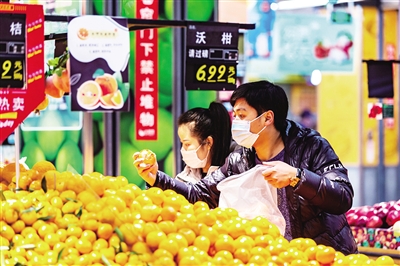 3月10日,消费者在贵州省安顺市西秀区一家超市选购水果。当日,国家统计局发布数据,2月份,全国居民消费价格指数(CPI)同比下降0.2%。■新华社发