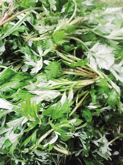 艾草又称艾蒿,现代医学药理证明,它是一种抗菌抗病毒药物,对病菌有着抑制和杀伤的作用,而且对呼吸系统疾病也有防治作用。中医学上常以艾入药,有理气血、暖子宫、祛寒湿的功能。春天里的艾草鲜嫩,最常见的吃法是做成“艾粑子”。简单的做法就是将艾草与鸡(鸭)蛋、面粉拌成糊糊,油炸吃,原汁原味、唇齿留香,令人回味无穷。复杂的做法比较“正统”,将晾洗好的艾草焯水,再与糯米粉反复揉捏成团,然后分成大小均匀的面团后压扁,可油煎,食之香气四溢;可上锅蒸,食之软糯。
