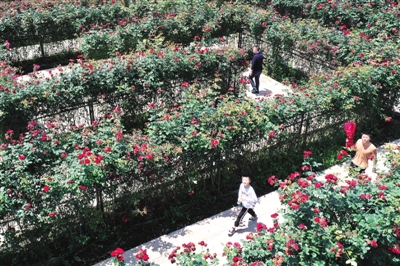 ▲5月1日,珠晖区茶山坳镇金甲玫瑰园进入盛花期,“玫瑰迷宫”景点花团锦簇,多彩多姿,引来不少游客前来游园。 ■记者 罗 盟 摄