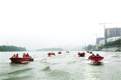 本报讯 (记者 金明达 通讯员 梁铨显) 耒水河波浪翻滚,无人机低空盘旋,伴随阵阵舷外机的轰鸣声,数艘冲锋舟箭一般驶向河中进行编队变换、水上救援等行动。日前,衡阳警备区组织基干民兵在耒水开展冲锋舟操舟手骨干集训,全面提高民兵应急力量遂行抗洪抢险任务的能力。