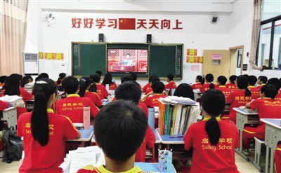 祁东县启航学校的学生们收看庆祝大会。■李梦娇 摄