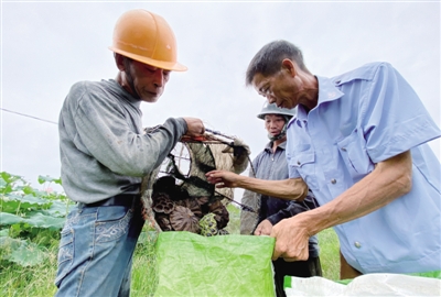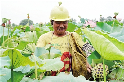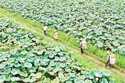 8月16日,在衡山县江东乡龙塘村湘莲种植基地内,当地莲农抢抓时机采摘成熟的莲蓬。近年来,该村大力发展种植、加工于一体的湘莲产业,共流转400余亩土地种植湘莲,让“荷花经济”带动村民增收致富,逐渐走出了一条具有地域特色的乡村振兴之路。■周围 摄