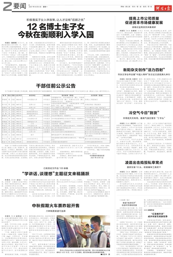 本报讯(记者 胡亚华)由于副热带高压的放肆膨胀,气温愈发张狂起来。监测显示,9月5日全市各地最高气温均在37℃以上,衡南县以39.4℃成为全市最热,衡阳市城区则为38.5℃。展望本周天气,随着冷空气逐步扩散南下,高温将乖乖“靠边站”,炎热将有所缓解。