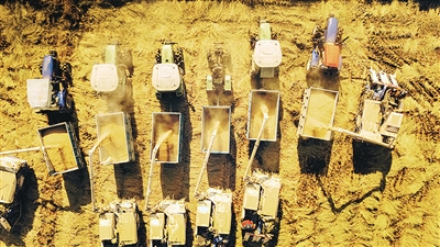 2021年10月20日,在辽宁省铁岭市铁岭县新台子镇西三家子村,万鑫水稻种植专业合作社机械化收割现场。■新华社发