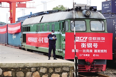 2020年10月15日,中欧班列“衡钢号”首发,这是衡阳首次开通至欧洲国家的铁路国际物流通道。今年8月1日,我市首列中亚班列开通运行。目前,衡阳中欧班列已实现常态化运营,效果良好。衡阳中欧(中亚)班列累计开行30列,发送1438个集装箱,货值1.7亿美元。“衡阳制造”的钢管、服装、电器、日用品和周边地区各类特色产品随之销往沿线的中亚、欧洲各国。此外,我市还成功争取湘粤非铁海联运通道在衡阳铁路监管作业区设立节点站,为我市提升对非洲的经贸合作开辟了新通道。