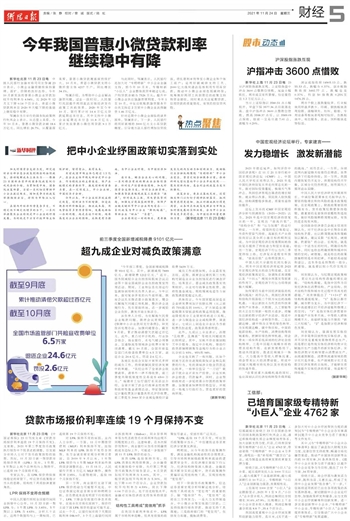 今年我国普惠小微贷款利率 继续稳中有降