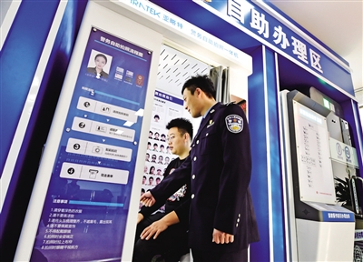 在辽宁省本溪市公安局北地派出所民警指导下,市民通过自助体检机完成机动车驾驶人检测项目(12月10日摄)。■新华社发