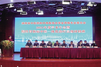 本报讯 (文/图 见习记者 李曾 通讯员 廖高峰 杨澄莉) 为促进区域肾脏病防治事业进一步发展,加强各医疗单位间的学术交流,昨日上午,由衡阳市中医医院承办的“湖南省中医药和中西医结合学会肾病专业委员会2021年度学术年会暨慢性肾脏病中医一体化治疗高级研修班”在衡召开,200余名肾内科医疗技术骨干参会。