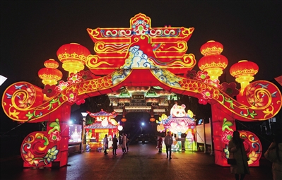 市民在南昌滕王阁景区观赏彩灯(2月12日摄)。 元宵节将至,位于江西省南昌市东湖区的滕王阁景区举办新春游园灯会,营造欢乐祥和的节日氛围。 ■新华社发