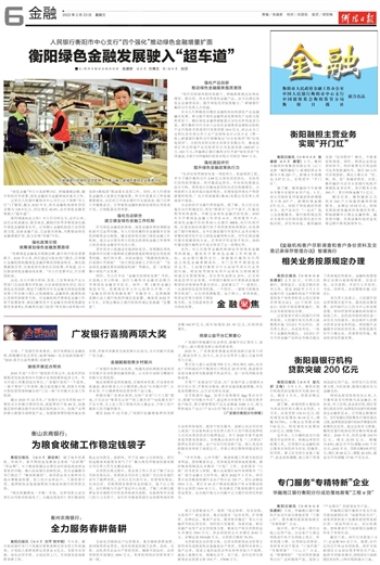 衡阳绿色金融发展驶入“超车道”